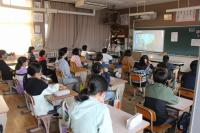2年生の授業の様子です。2年生は、俳句をつくっていました。上手に季語を使って先生と相談しながらいい俳句をつくっていました。