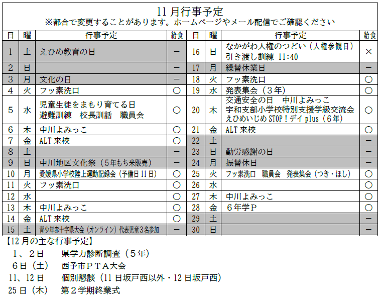 西予市立中川小学校ホームページ