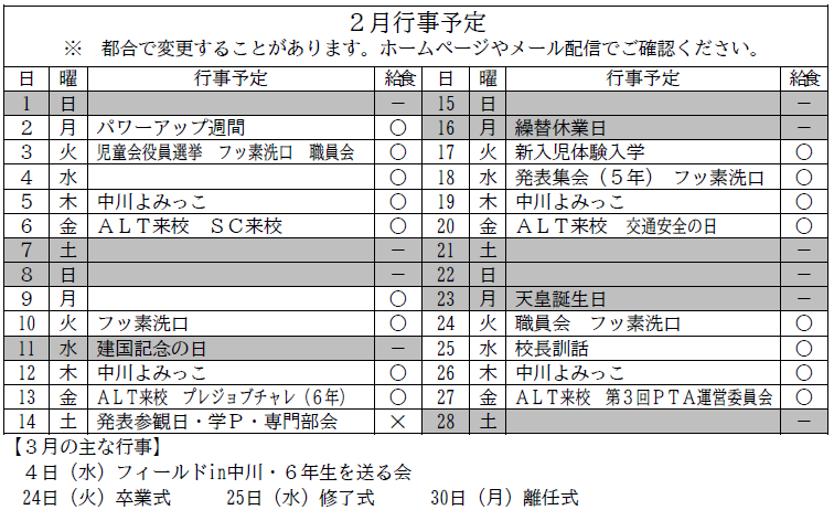 行事予定(年間・月)